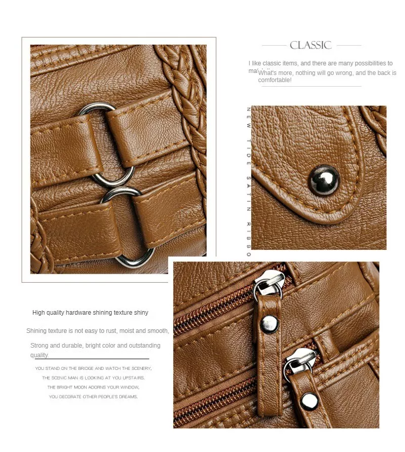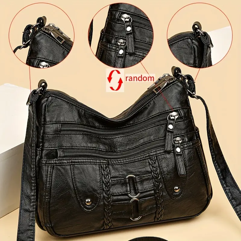 Sac à main en cuir souple de grande capacité de style rétro pour femme